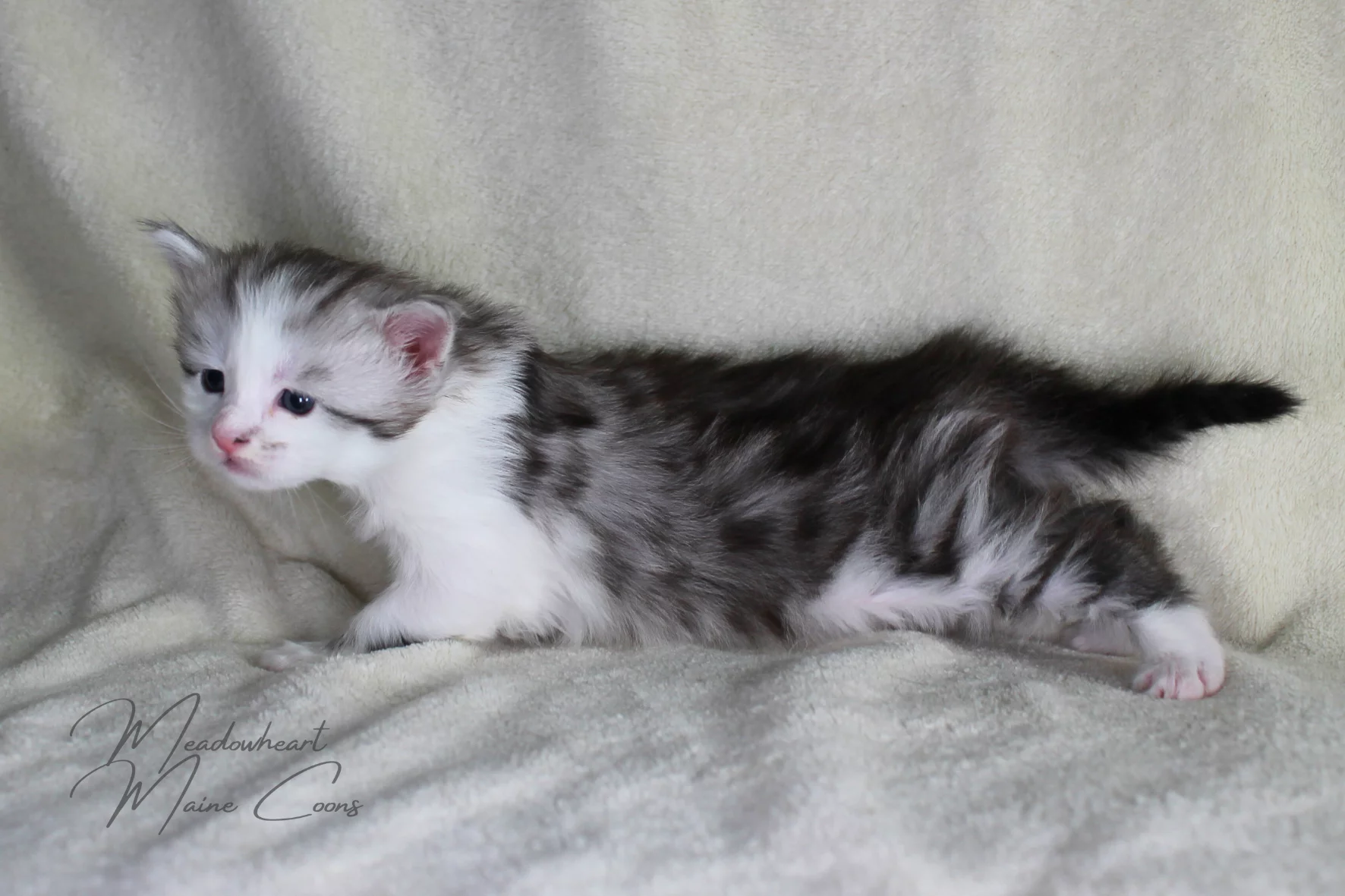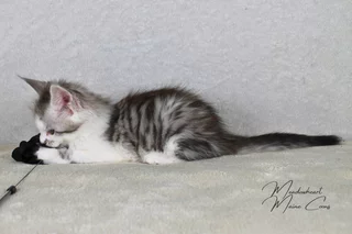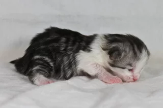 Geburtsdatum: 05.01.2026 Geschlecht: weiblich Farbe: black silver mackerel tabby white Vater: Silva Donum Kili Mutter: G'Galateia of RakshasaTigers